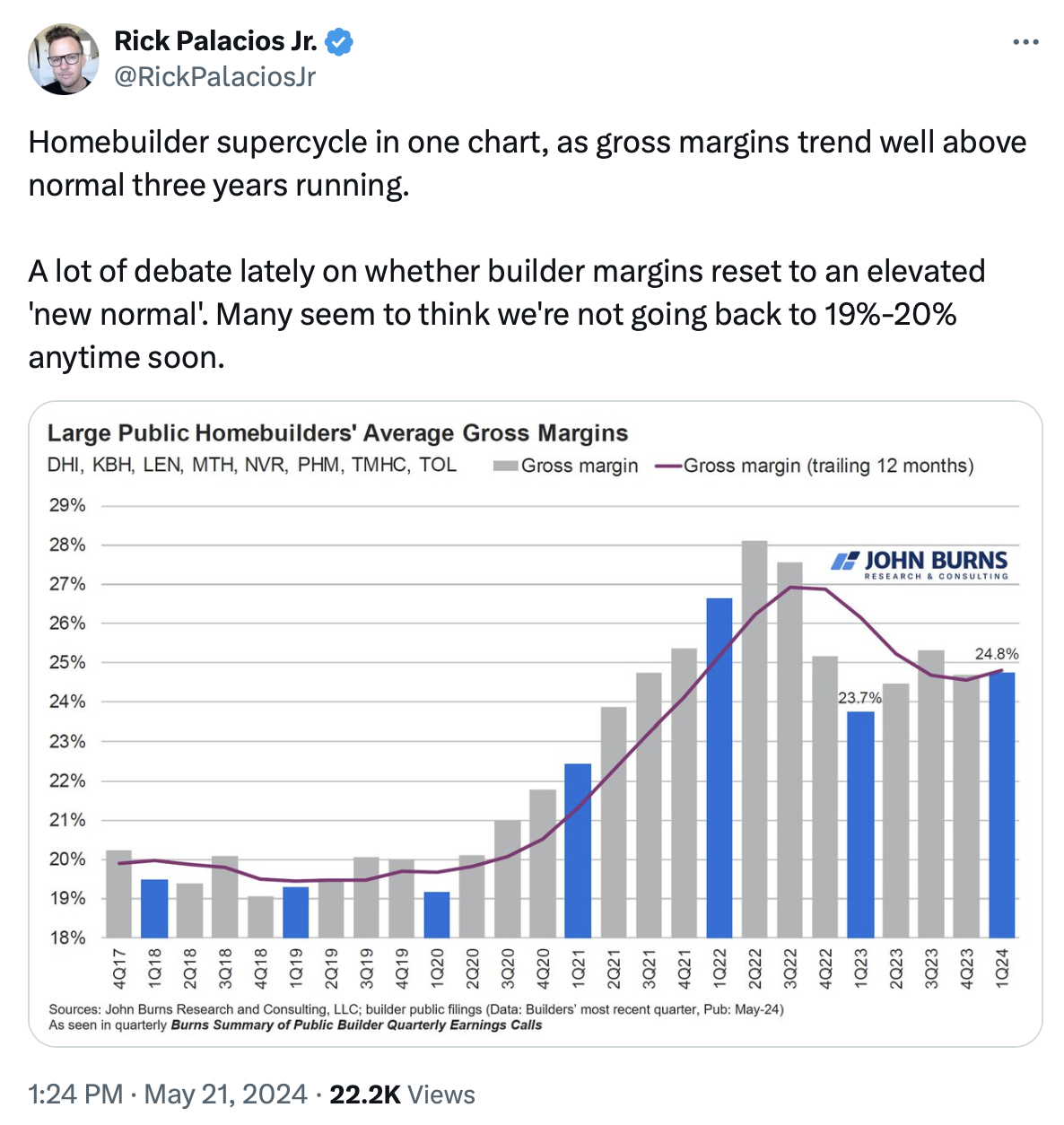 This means they can continue to offer rate buydowns which has remained a way to boost sales in a high rate environment. New construction only represents about 10% of the nation’s residential inventory but this advantage is something very difficult for existing home sellers to compete with.