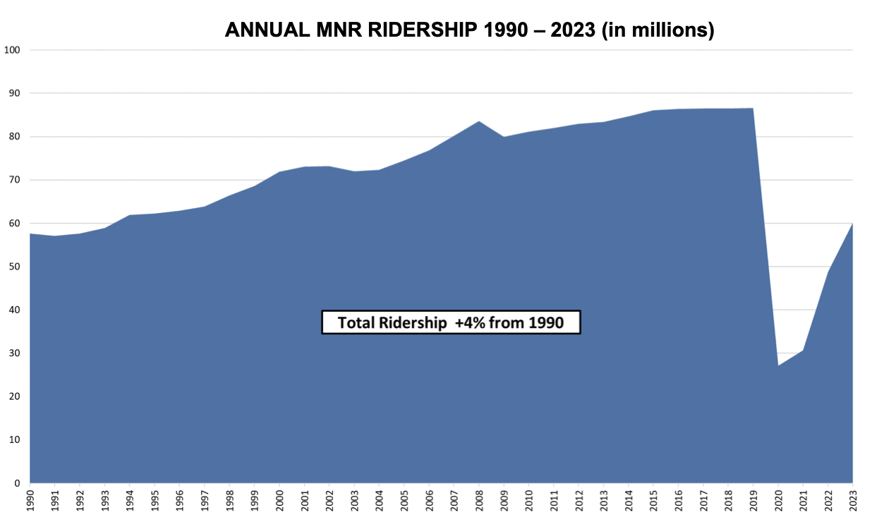 From 2018 to 2023, bus ridership fell 40.2% and subway ridership fell 31.4%. That’s a sea change of commuter habits being modified.