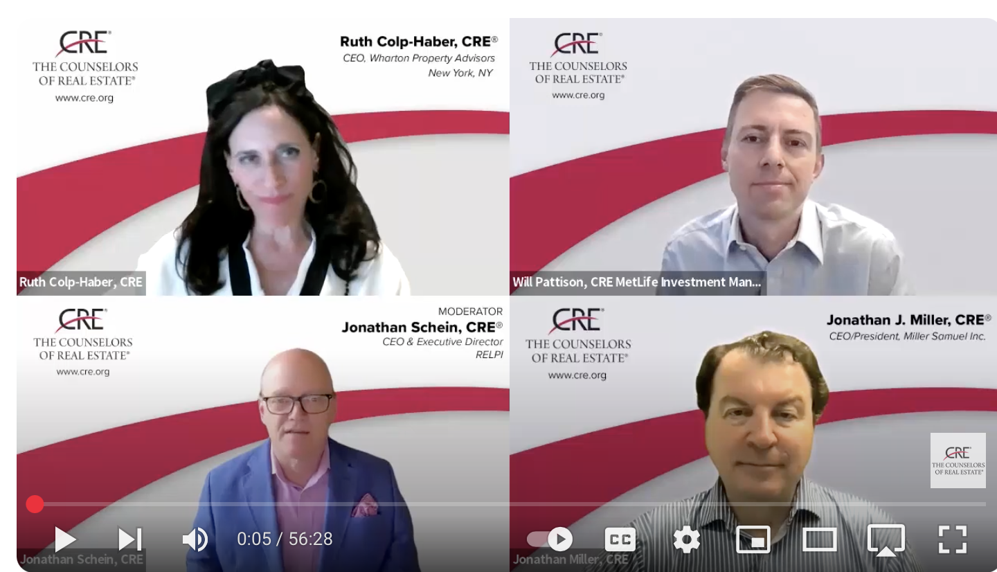 “From the influential impact on the office market to the redefining of retail, the global pandemic prompted a rethinking of space utilization, investment strategies, valuations, and the overall approach to commercial and residential real estate, leading to lasting changes. Join Jonathan A. Schein CRE, Ruth Colp-Haber, CRE, William Pattison, CRE, and Jonathan Miller, CRE, Member of RAC, for a powerful hour of real estate dialogue, reflection, and analysis.”