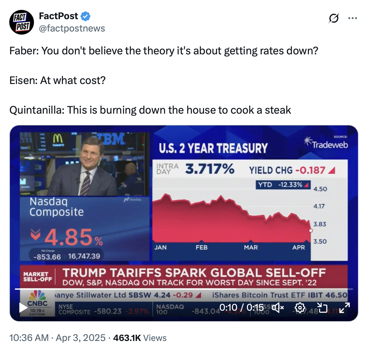 I’ve been calling this tariff rollout “the beginning of a new era of dumbness” because of the lack of understanding of what a tariff actually is. “A tariff is a tax on the American consumer.” Tariff policy appears to have been conceived in a misinformation silo. Financial market volatility is the main issue here, not whether the markets go up or down on a particular day. Companies are unable to forecast or project their businesses at the moment. That alone will drag down the economy.