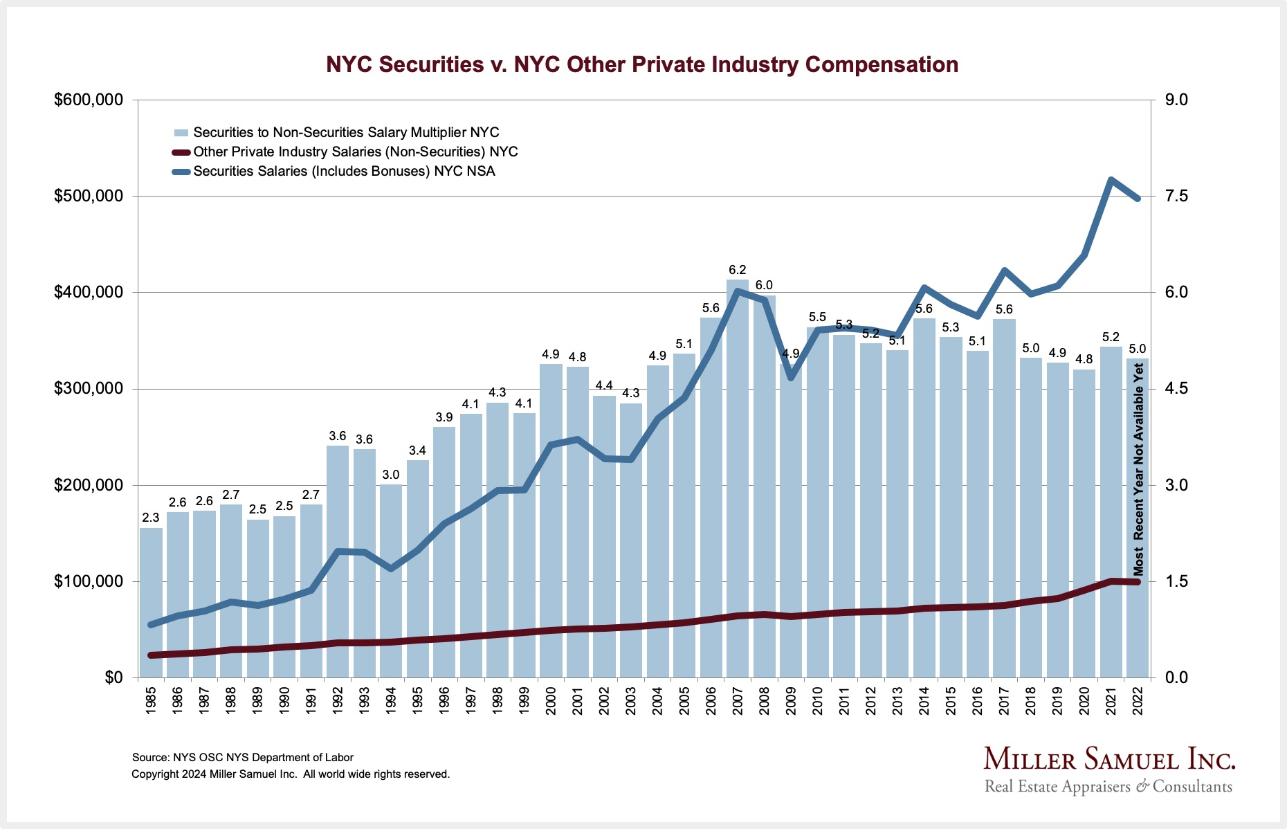 The New York State Comptroller usually releases New York securities industry metrics in March, and more than a decade ago, it had an inkling of correlation to the NYC housing market. Post-financial crisis, with the addition of a Dodd-Frank regulatory overlay that attempted to discourage the rampant moral hazard of prior decades, the compensation of the securities industry is less of a future bellwether for the housing market. It’s a relief because I grew sick of the stories of 30-year-old Wall Streeters buying $250 thousand sports cars and $5 million luxury apartments as part of a financial three-ring circus. It remains a big part of the economic story but less meteoric.